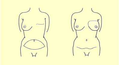 腹直筋皮弁法(お腹の皮膚、脂肪、筋肉を用いる方法)