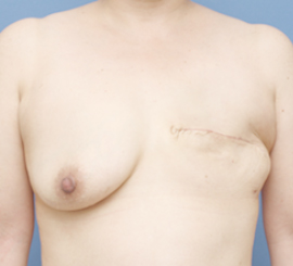 左乳房の変形に対して培養脂肪注移植を行った。左乳房の形態は良好で柔らかく自然である。乳頭乳輪も硬さが改善して伸びている
